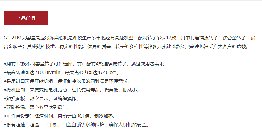 本網(wǎng)頁所展示的有關(guān)【GL-21M大容量高速冷凍離心機】的信息/圖片/參數(shù)等由的會員【湘儀cence-深圳柏萊科技有限公司 】提供,由柏萊儀器網(wǎng)-專業(yè)銷售儀器儀表服務(wù)商-深圳柏萊科技有限公司會員【湘儀cence-深圳柏萊科技有限公司 】自行對信息/圖片/參數(shù)等的真實性、準確性和合法性負責(zé),本平臺(本網(wǎng)站)僅提供展示服務(wù),請謹慎交易,因交易而產(chǎn)生的法律關(guān)系及法律糾紛由您自行協(xié)商解決,本平臺(本網(wǎng)站)對此不承擔(dān)任何責(zé)任。您在本網(wǎng)頁可以瀏覽【GL-21M大容量高速冷凍離心機】有關(guān)的信息/圖片/價格等及提供 【GL-21M大容量高速冷凍離心機】的商家公司簡介、聯(lián)系方式等信息。