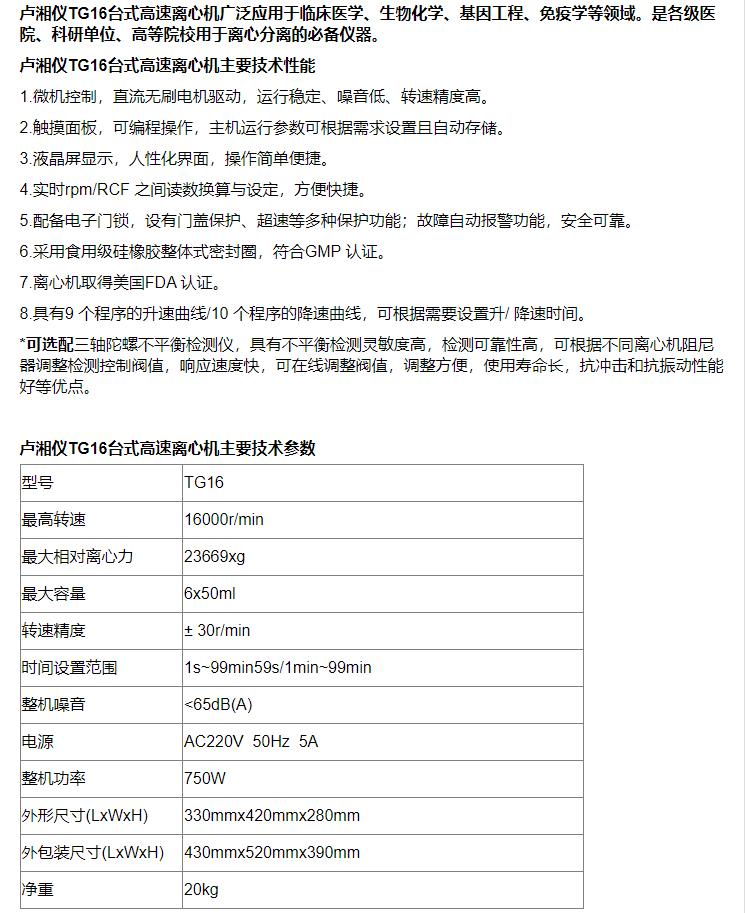 TG16臺(tái)式高速離心機(jī)