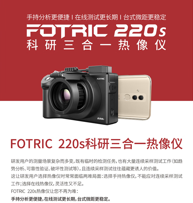 本網頁所展示的有關【FOTRIC 220s科研三合一熱像儀】的信息/圖片/參數等由的會員【飛礎科-深圳柏萊科技有限公司 】提供,由柏萊儀器網-專業(yè)銷售儀器儀表服務商-深圳柏萊科技有限公司會員【飛礎科-深圳柏萊科技有限公司 】自行對信息/圖片/參數等的真實性、準確性和合法性負責,本平臺(本網站)僅提供展示服務,請謹慎交易,因交易而產生的法律關系及法律糾紛由您自行協商解決,本平臺(本網站)對此不承擔任何責任。您在本網頁可以瀏覽【FOTRIC 220s科研三合一熱像儀】有關的信息/圖片/價格等及提供 【FOTRIC 220s科研三合一熱像儀】的商家公司簡介、聯系方式等信息。