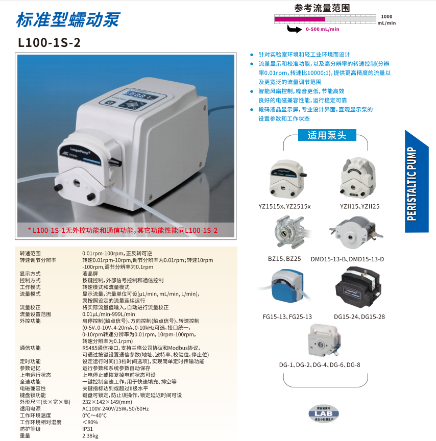 L100-1S-2標(biāo)準(zhǔn)型蠕動(dòng)泵