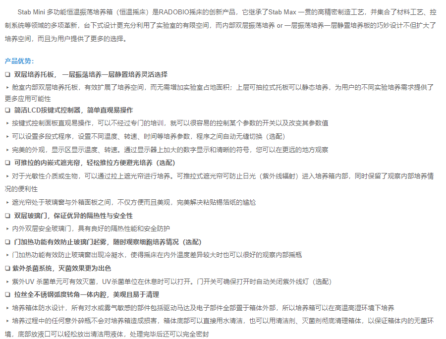 本網(wǎng)頁所展示的有關【多功能恒溫振蕩培養(yǎng)箱Stab Mini】的信息/圖片/參數(shù)等由的會員【潤都生物-深圳柏萊科技有限公司 】提供,由柏萊儀器網(wǎng)-專業(yè)銷售儀器儀表服務商-深圳柏萊科技有限公司會員【潤都生物-深圳柏萊科技有限公司 】自行對信息/圖片/參數(shù)等的真實性、準確性和合法性負責,本平臺(本網(wǎng)站)僅提供展示服務,請謹慎交易,因交易而產(chǎn)生的法律關系及法律糾紛由您自行協(xié)商解決,本平臺(本網(wǎng)站)對此不承擔任何責任。您在本網(wǎng)頁可以瀏覽【多功能恒溫振蕩培養(yǎng)箱Stab Mini】有關的信息/圖片/價格等及提供 【多功能恒溫振蕩培養(yǎng)箱Stab Mini】的商家公司簡介、聯(lián)系方式等信息。