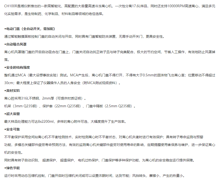 本網(wǎng)頁(yè)所展示的有關(guān)【CH100R大容量高速冷凍離心機(jī)】的信息/圖片/參數(shù)等由的會(huì)員【湘儀cence-深圳柏萊科技有限公司 】提供,由柏萊儀器網(wǎng)-專(zhuān)業(yè)銷(xiāo)售儀器儀表服務(wù)商-深圳柏萊科技有限公司會(huì)員【湘儀cence-深圳柏萊科技有限公司 】自行對(duì)信息/圖片/參數(shù)等的真實(shí)性、準(zhǔn)確性和合法性負(fù)責(zé),本平臺(tái)(本網(wǎng)站)僅提供展示服務(wù),請(qǐng)謹(jǐn)慎交易,因交易而產(chǎn)生的法律關(guān)系及法律糾紛由您自行協(xié)商解決,本平臺(tái)(本網(wǎng)站)對(duì)此不承擔(dān)任何責(zé)任。您在本網(wǎng)頁(yè)可以瀏覽【CH100R大容量高速冷凍離心機(jī)】有關(guān)的信息/圖片/價(jià)格等及提供 【CH100R大容量高速冷凍離心機(jī)】的商家公司簡(jiǎn)介、聯(lián)系方式等信息。
