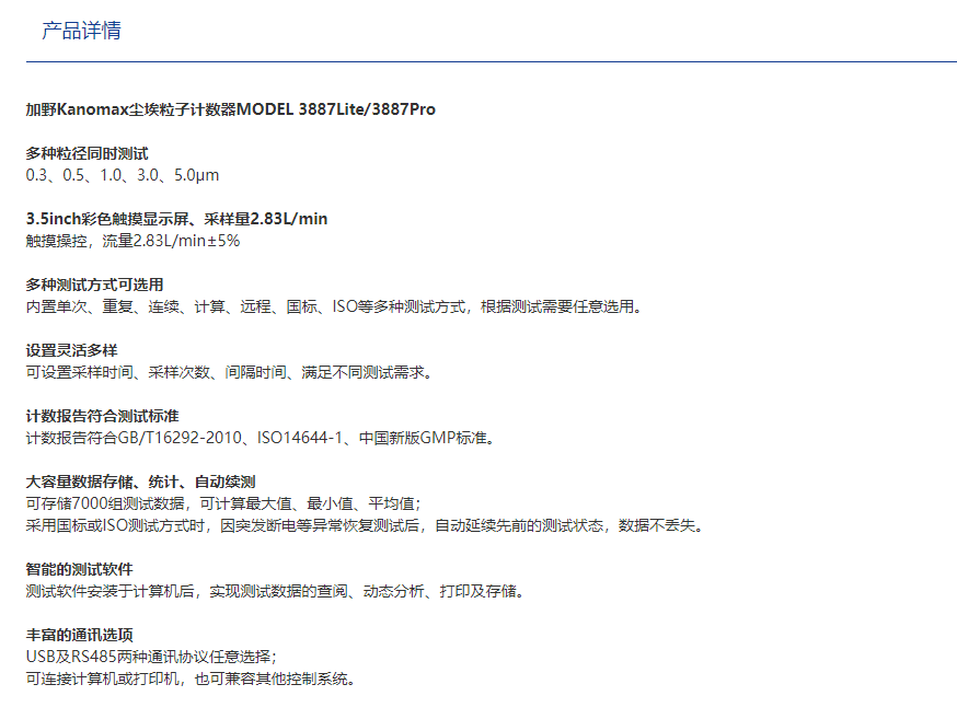 本網(wǎng)頁所展示的有關【3887Lite/3887Pro塵埃粒子計數(shù)器日本加野Kanomax】的信息/圖片/參數(shù)等由的會員【加野KANOMAX 】提供,由柏萊儀器網(wǎng)-專業(yè)銷售儀器儀表服務商-深圳柏萊科技有限公司會員【加野KANOMAX 】自行對信息/圖片/參數(shù)等的真實性、準確性和合法性負責,本平臺(本網(wǎng)站)僅提供展示服務,請謹慎交易,因交易而產(chǎn)生的法律關系及法律糾紛由您自行協(xié)商解決,本平臺(本網(wǎng)站)對此不承擔任何責任。您在本網(wǎng)頁可以瀏覽【3887Lite/3887Pro塵埃粒子計數(shù)器日本加野Kanomax】有關的信息/圖片/價格等及提供 【3887Lite/3887Pro塵埃粒子計數(shù)器日本加野Kanomax】的商家公司簡介、聯(lián)系方式等信息。