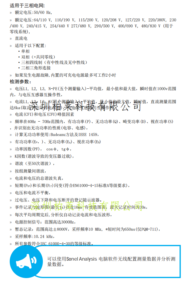 本網(wǎng)頁所展示的有關(guān)【電能質(zhì)量分析儀PQM-711 SONEL】的信息/圖片/參數(shù)等由的會員【Sonel-深圳柏萊科技有限公司 】提供,由柏萊儀器網(wǎng)-專業(yè)銷售儀器儀表服務(wù)商-深圳柏萊科技有限公司會員【Sonel-深圳柏萊科技有限公司 】自行對信息/圖片/參數(shù)等的真實性、準(zhǔn)確性和合法性負(fù)責(zé),本平臺(本網(wǎng)站)僅提供展示服務(wù),請謹(jǐn)慎交易,因交易而產(chǎn)生的法律關(guān)系及法律糾紛由您自行協(xié)商解決,本平臺(本網(wǎng)站)對此不承擔(dān)任何責(zé)任。您在本網(wǎng)頁可以瀏覽【電能質(zhì)量分析儀PQM-711 SONEL】有關(guān)的信息/圖片/價格等及提供 【電能質(zhì)量分析儀PQM-711 SONEL】的商家公司簡介、聯(lián)系方式等信息。