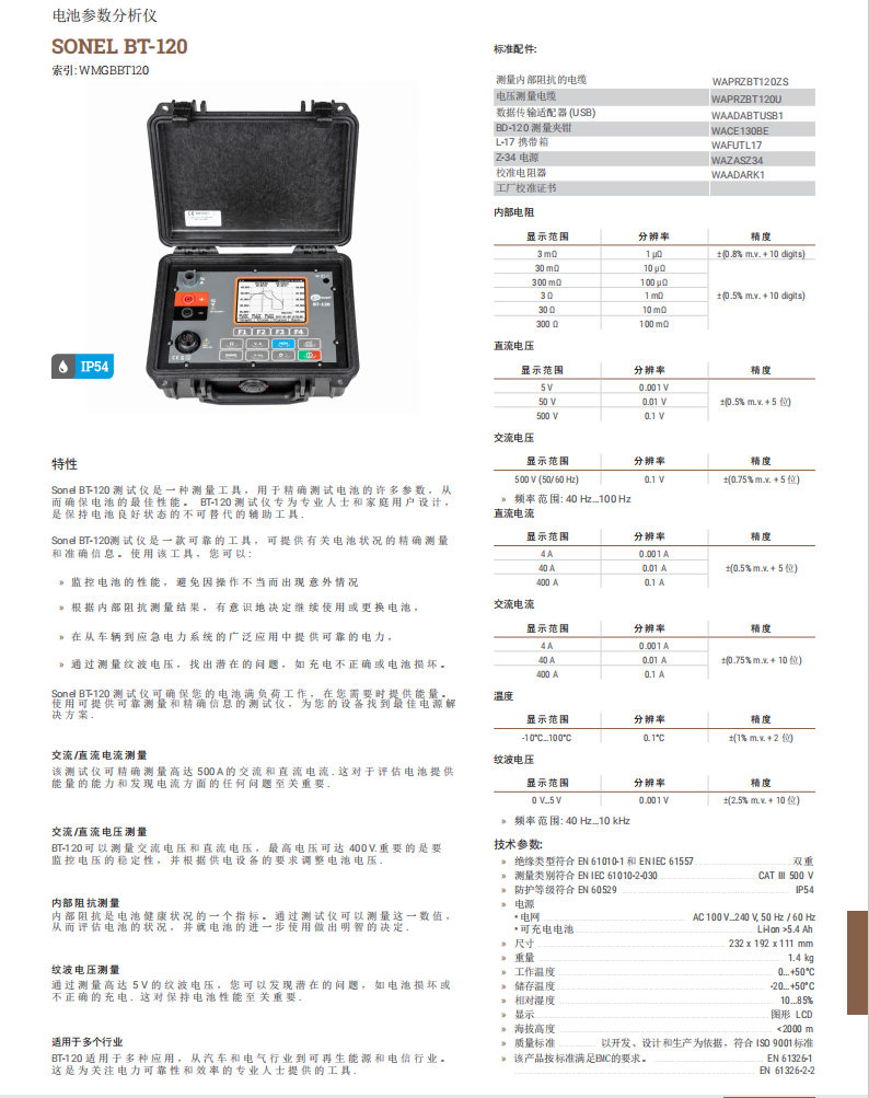 本網(wǎng)頁所展示的有關【BT-120電池參數(shù)分析儀 SONEL】的信息/圖片/參數(shù)等由的會員【Sonel-深圳柏萊科技有限公司 】提供,由柏萊儀器網(wǎng)-專業(yè)銷售儀器儀表服務商-深圳柏萊科技有限公司會員【Sonel-深圳柏萊科技有限公司 】自行對信息/圖片/參數(shù)等的真實性、準確性和合法性負責,本平臺(本網(wǎng)站)僅提供展示服務,請謹慎交易,因交易而產(chǎn)生的法律關系及法律糾紛由您自行協(xié)商解決,本平臺(本網(wǎng)站)對此不承擔任何責任。您在本網(wǎng)頁可以瀏覽【BT-120電池參數(shù)分析儀 SONEL】有關的信息/圖片/價格等及提供 【BT-120電池參數(shù)分析儀 SONEL】的商家公司簡介、聯(lián)系方式等信息。