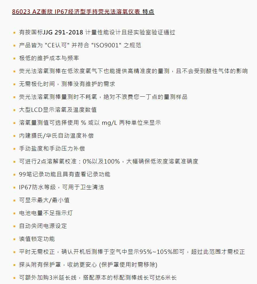本網(wǎng)頁所展示的有關(guān)【AZ86023熒光法溶氧儀】的信息/圖片/參數(shù)等由的會員【臺灣衡欣AZ-深圳柏萊科技有限公司 】提供,由柏萊儀器網(wǎng)-專業(yè)銷售儀器儀表服務(wù)商-深圳柏萊科技有限公司會員【臺灣衡欣AZ-深圳柏萊科技有限公司 】自行對信息/圖片/參數(shù)等的真實性、準(zhǔn)確性和合法性負(fù)責(zé),本平臺(本網(wǎng)站)僅提供展示服務(wù),請謹(jǐn)慎交易,因交易而產(chǎn)生的法律關(guān)系及法律糾紛由您自行協(xié)商解決,本平臺(本網(wǎng)站)對此不承擔(dān)任何責(zé)任。您在本網(wǎng)頁可以瀏覽【AZ86023熒光法溶氧儀】有關(guān)的信息/圖片/價格等及提供 【AZ86023熒光法溶氧儀】的商家公司簡介、聯(lián)系方式等信息。