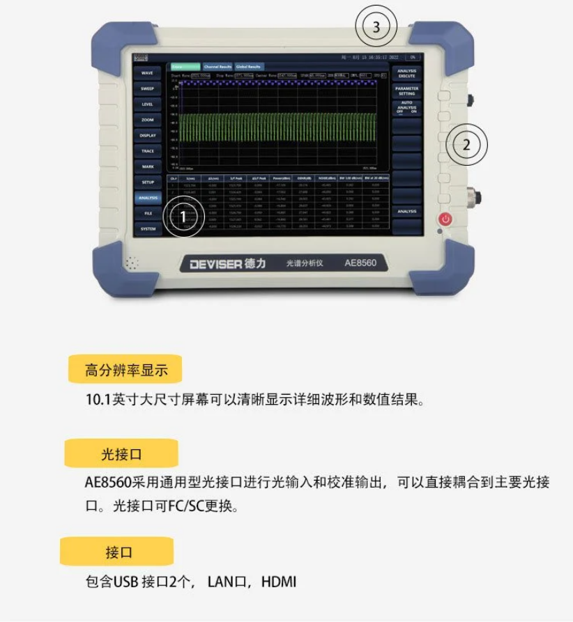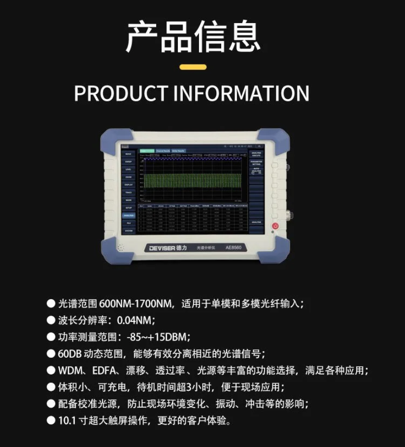 AE8560手持式光譜分析儀 單模和多模光纖光譜測(cè)試 德力光電
