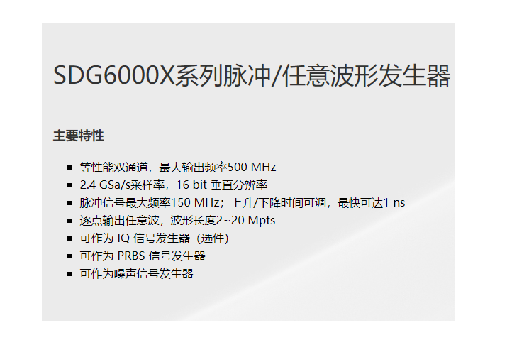 SDG6000X任意波形發(fā)生器 雙通道 頻率500MHz 2.4 GSa/s采樣率