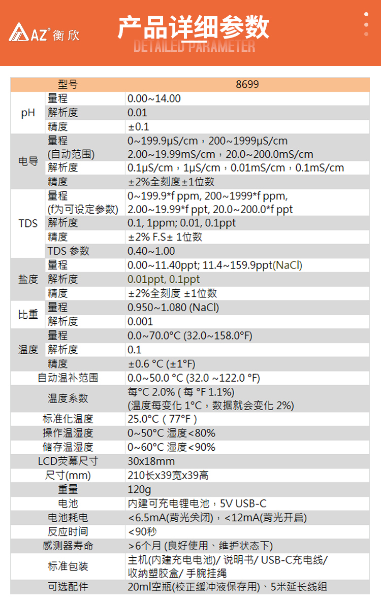 】自行對(duì)信息/圖片/參數(shù)等的真實(shí)性、準(zhǔn)確性和合法性負(fù)責(zé),本平臺(tái)(本網(wǎng)站)僅提供展示服務(wù),請(qǐng)謹(jǐn)慎交易,因交易而產(chǎn)生的法律關(guān)系及法律糾紛由您自行協(xié)商解決,本平臺(tái)(本網(wǎng)站)對(duì)此不承擔(dān)任何責(zé)任。您在本網(wǎng)頁(yè)可以瀏覽【AZ8699便攜TDS水質(zhì)鹽度計(jì) 衡欣電導(dǎo)率EC計(jì) 鹵汁鹽度淡水養(yǎng)殖檢測(cè)儀 AZ衡欣】有關(guān)的信息/圖片/價(jià)格等及提供